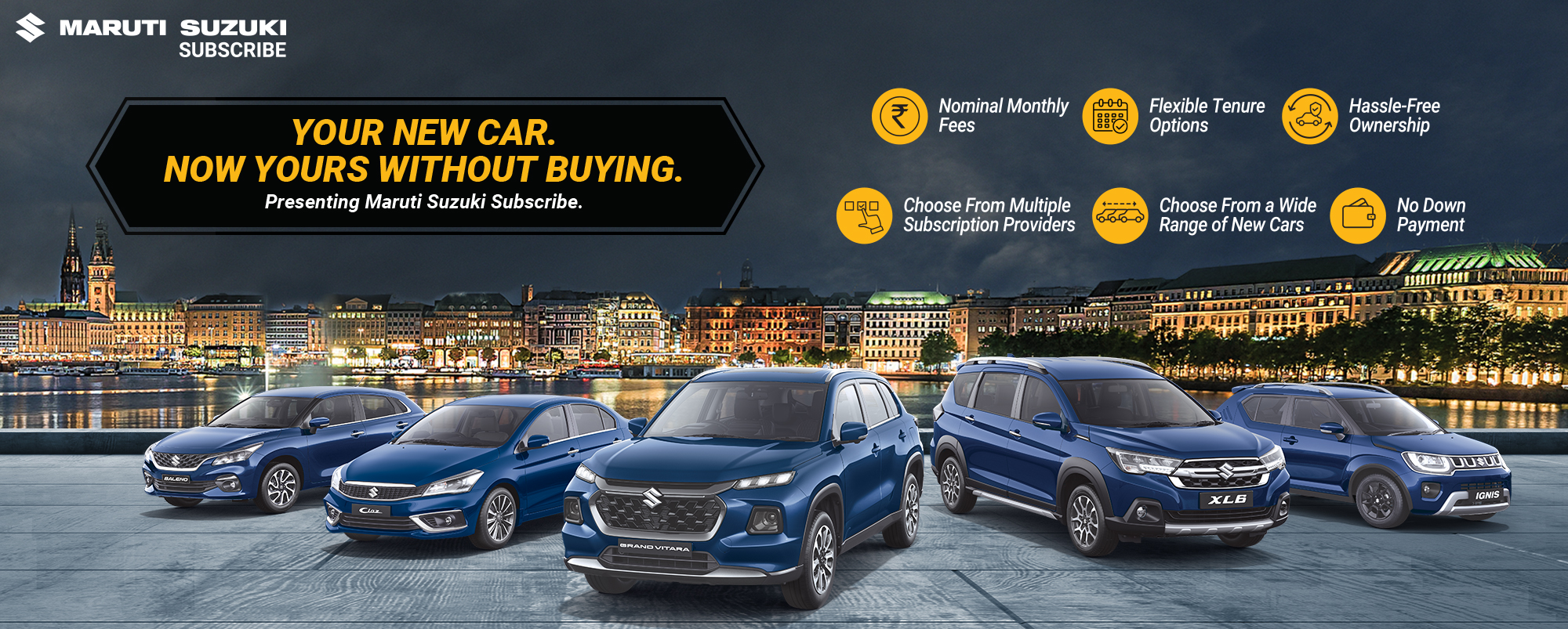 Maruti Suzuki Subscribe enables all customers to enjoy driving their preferred Maruti Suzuki cars without having to deal with all the financial responsibilities that come with owning a car.All you need to do is opt for a monthly subscription plan at a fixed monthly fee, which includes the routine maintenance and insurance costs, and choose a flexible tenure. At Saraogi Automobiles in, Sector 27-28, Hisar, all Hatchback, Sedan, SUV, the MUV models line-up includes Baleno, Invicto, EVitara, Jimny, Ciaz, Ignis, Fronx, Grand Vitara, XL6. Here, you will enjoy Maruti Suzuki Subscribe benefits such as: